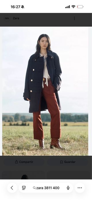 Abrigo estilo marinero de Zara. - Diseño de doble botonadura con botones dorados. - Bolsillos frontales con solapa. - Cuello solapa clásico.