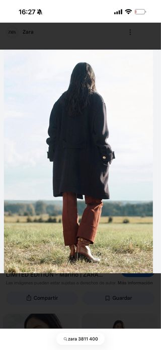 Elegante abrigo largo de Zara en color beige. Su diseño envolvente y la tela de calidad lo hacen perfecto para cualquier ocasión. - Capucha - Corte amplio y moderno. - Cinturón para ajustar. - Bolsillos laterales. Talla un poco pequeño
