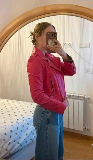 Biker efecto piel color rosa Barbie de Zara. Nuevo sin etiquetas. No se ha usado nunca y está en perfecto estado. Talla S