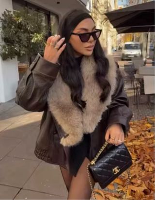 Cazadora de cuero con cuello de pelo desmontable. - Diseño elegante y moderno. - Cuello de pelo sintético suave. - Cierre de cremallera frontal.