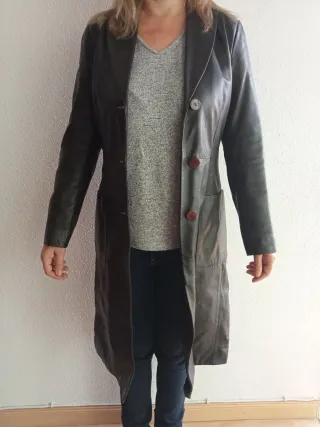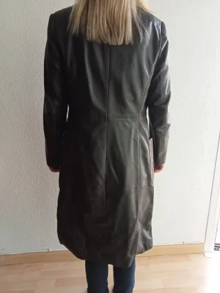 Elegante abrigo largo de piel en color marrón. Un clásico que no pasa de moda. - Diseño entallado. - Cierre de botones. - Bolsillos frontales.
