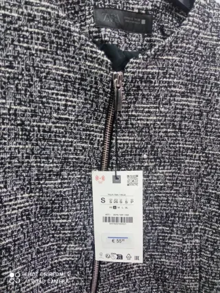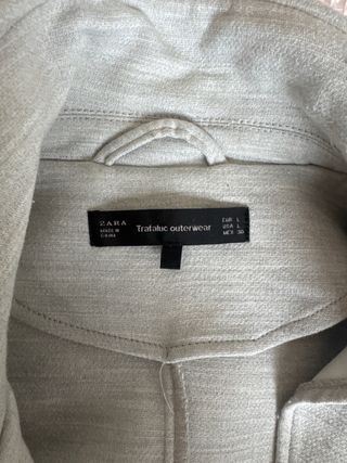 Chaqueta de Zara con un diseño moderno y elegante. - Cierre de botones dorados. - Bolsillos frontales con solapa. - Cuello camisero. La talla q pone es XS pero es oversize y yo uso talla M y queda perfecta