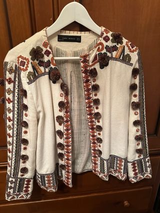 Chaqueta de Zara con un diseño único y llamativo. - Preciosa chaqueta con bordados y pompones. - Mangas largas. - Cuello redondo.
