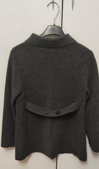 Chaqueta de punto de la marca Zara en color gris. Presenta un diseño de doble abotonadura y bolsillos frontales. - Cuello solapa. - Cierre con botones. - Dos bolsillos de parche. -De paño Usado dos veces, esta perfecta
