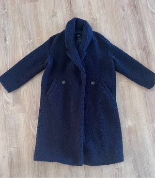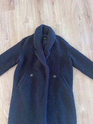 Abrigo estilo borreguillo de Zara. Es una prenda cálida y cómoda. - Diseño de doble botonadura. - Bolsillos laterales. - Cuello solapa.