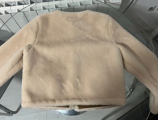 Abrigo de pelo suave en color blanco roto, perfecto para añadir un toque acogedor a tu look. - Diseño corto y moderno. - Cierre con botones tipo toggles dorados. - Bolsillos delanteros. - Material de pelo sintético muy agradable al tacto. Talla s