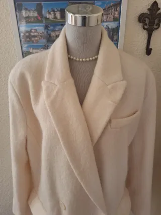 Chaqueta de estilo clásico con doble botonadura. - Diseño elegante con cuello alto. - Detalle de botones oscuros. - Mangas con puños abotonados. - Bolsillos frontales con solapa.