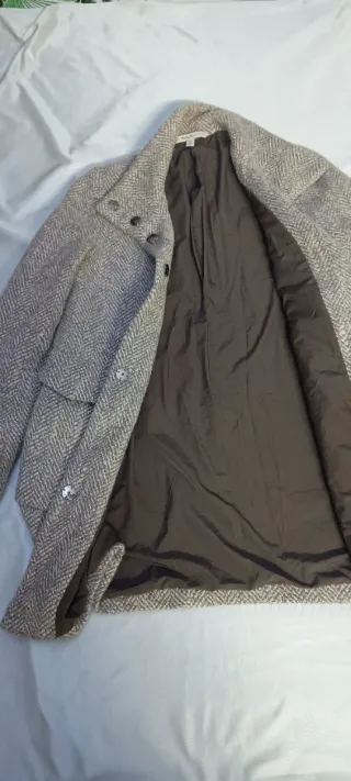 Abrigo de paño beige y gris