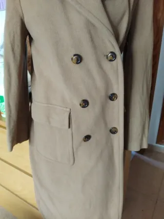 Elegante abrigo largo de Zara en color beige. Un clásico que no pasa de moda. - Diseño de doble botonadura. - Cuello solapa con muesca. - Bolsillos frontales con solapa. - Puños con botones.