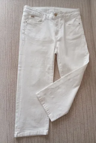 Pantalón pirata de la marca Cortefiel de tela elástica. - Diseño de corte pirata. - Color blanco. Está como nuevo, usado dos veces.!! Marca.zara.gafas.bolso.monedero.mochila.capazo.zapatillas.cuñas.botas.mono.shorts.bikini.falda.anillo.collar.pulsera.floral.camisa.blusa.cazadora.blazer.abrigo.pull&bear.mango.Lefties.H&M.jersey.bershka.stradivarius