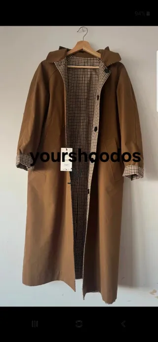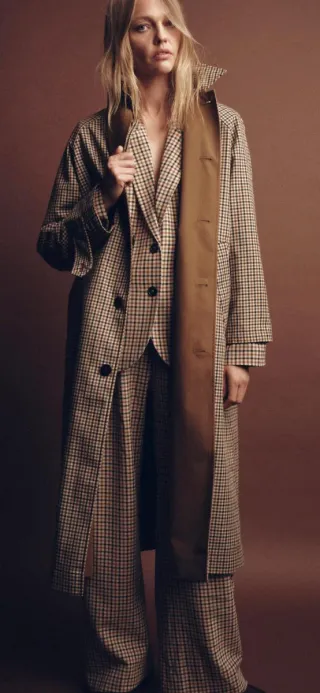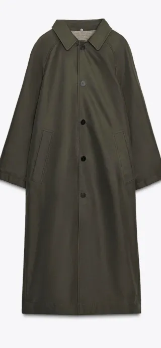 Trench coat reversible de Zara, ideal para un estilo versátil. - Diseño reversible con estampado de cuadros. - Colección T/S.