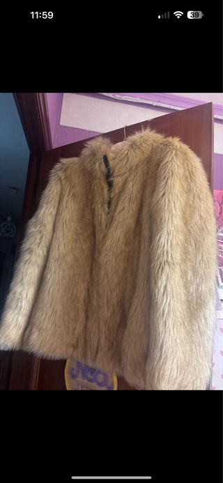 Abrigo de pelo sintético con un diseño elegante. - Material: Pelo sintético. - Cierre frontal. - Va forrado por dentro.