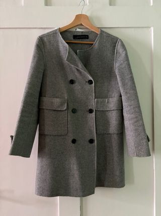 Abrigo de paño de Zara. - Diseño de doble botonadura. - Cuello solapa. - Bolsillos frontales. - Hombreras.