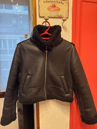 Chaqueta corta de efecto piel con forro interior de borreguito.