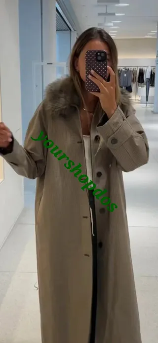 Trench reversible de Zara con cuello de pelo extraible - Diseño elegante y versátil. - Cierre de botones. - Puños ajustables.