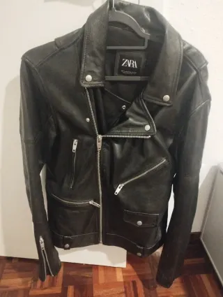 Chaqueta estilo motera de Zara. - Diseño clásico con cremalleras. - Cuello solapa con botones. - Puños con cremallera.