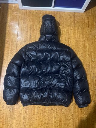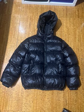 Chaqueta puffer brillante con capucha.Estilo Zara con capucha ajustable. Talla L pero pequeña,similar a una M Modelo:178cm - Diseño acolchado. - Cierre de cremallera frontal. - Puños y bajo elásticos.
