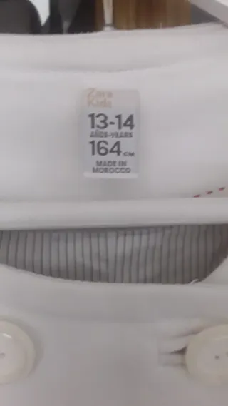 Elegante abrigo de Zara en color blanco. Un básico versátil para cualquier armario.talla 14/164cm mide de hombros 35cm de sisa45cm y largo75cm - Diseño de doble botonadura. - Cuello redondo. - Detalle de hombreras.