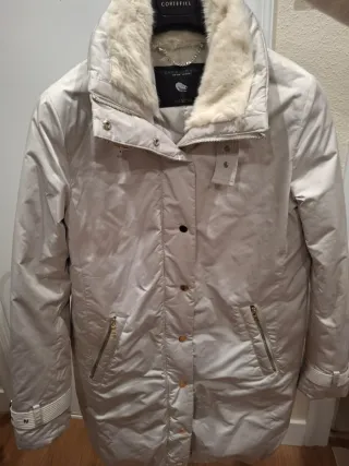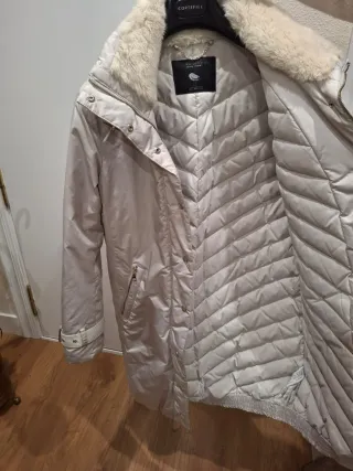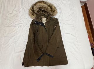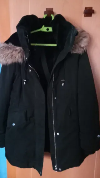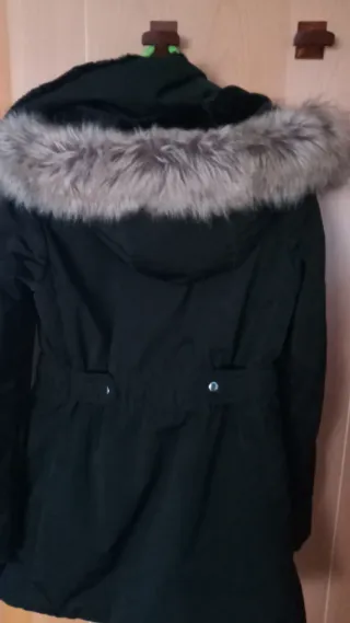 Abrigo de invierno de Zara con capucha y detalles de pelo. - Cierre de cremallera no sube esta dañada. - Bolsillos laterales. - Puños elásticos.