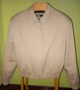 Chaqueta de paño de Zara en color beige. Diseño clásico y versátil. - Cierre de botones. - Dos bolsillos delanteros. - Cuello camisero.