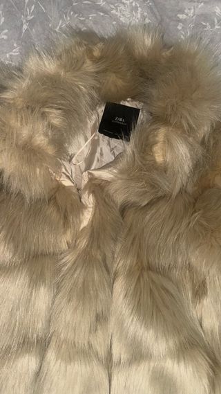 Abrigo de Zara con un suave efecto pelo. - Color beige. - Diseño de solapa ancha. - Cierre de un botón.