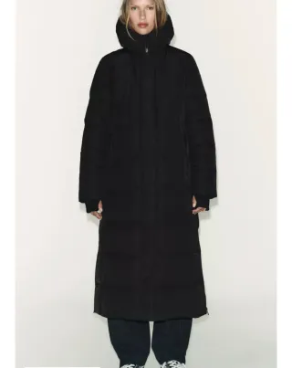 Abrigo largo acolchado de Zara. Un básico para mantenerte abrigado con estilo.Nuevo web de zara 89,90 -Repele el agua. - Diseño largo y acolchado. - Capucha integrada. - Cierre de cremallera y corchetes imanes.