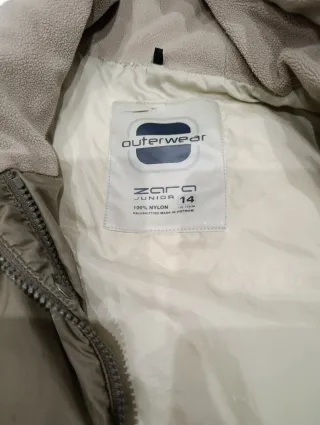Plumífero Zara Beige Blanco Talla L,waterproof