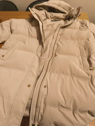 Abrigo plumífero largo de Zara, perfecto para el frío. - Diseño acolchado. - Capucha integrada. - Cierre de cremallera. - Bolsillos frontales con solapa. Está muy bien solo que con efectos del uso, pero está muy bien