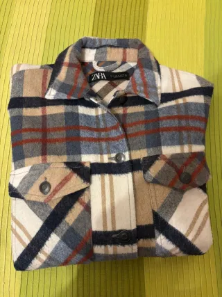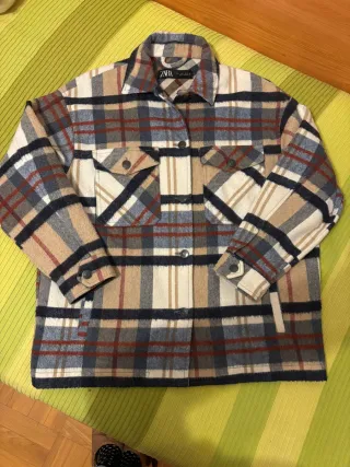 Chaqueta de cuadros de Zara. - Diseño de cuadros en tonos tierra, azul y rojo. - Cierre de botones. - Dos bolsillos en el pecho con botón.
