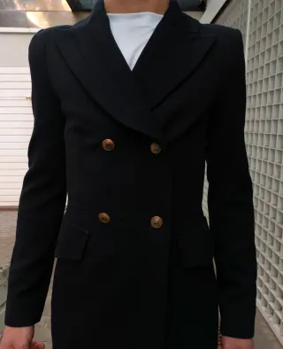 Abrigo negro con botones dorados