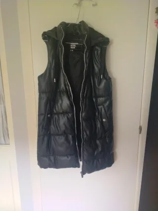 Chaleco acolchado de Zara con capucha. - Diseño largo. - Cierre de cremallera frontal. - Bolsillos laterales.