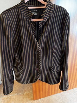 Chaqueta tipo blazer de la marca Zara. - Color azul marino y otra negra. - Diseño clásico con un botón. - Cuello solapa.