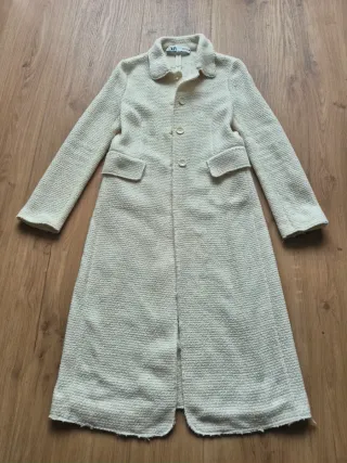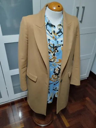 Elegante abrigo largo de Zara. - Diseño clásico y atemporal. - Cierre de botón. - Bolsillos frontales. - Cuello solapa.