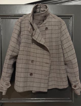 Chaqueta de cuadros de Zara. - Diseño cruzado con botones. - Cuello alto. - Puños abotonados.
