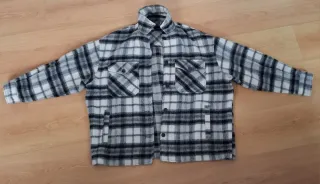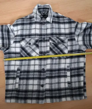 Sobrecamisa Zara Cuadros Gris, Blanca y Negra.