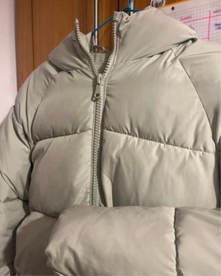 Abrigo plumífero de Zara en color beige. Es una prenda cálida y con estilo. - Diseño acolchado. - Capucha integrada. - Bolsillos frontales con solapa.