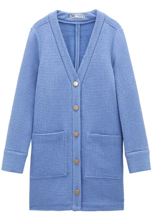 Abrigo de punto con botones dorados. - Diseño de canalé. - Bolsillos delanteros. - Puños con detalle de botón.