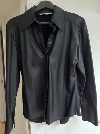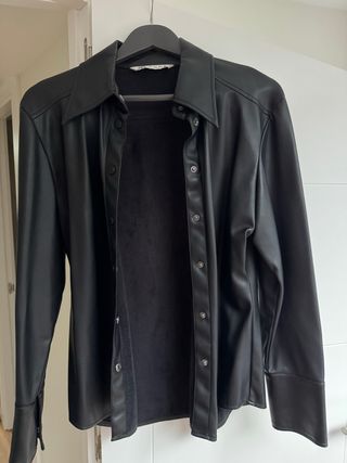 Sobrecamisa de efecto piel en color negro. Un básico versátil para cualquier armario. - Cuello camisero. - Cierre de botones. - Puños con detalle de botones. - Bolsillos interiores.