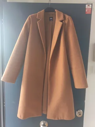 Abrigo elegante de Zara en color camel. Ideal para añadir un toque sofisticado a tu vestuario. - Diseño clásico con solapas. - Corte recto. - Tejido de calidad. - Bolsillos