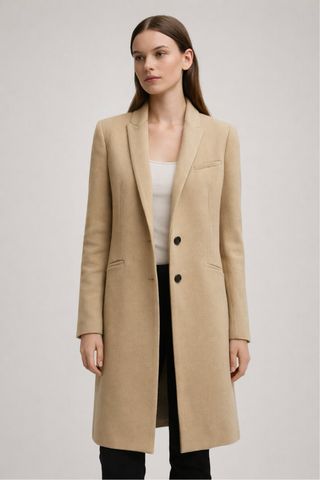 Elegante abrigo de Zara en color beige, perfecto para añadir un toque sofisticado a tu armario. - Corte clásico. - Cierre de dos botones. - Bolsillos frontales.