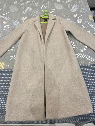 Abrigo largo de Zara en color beige. Un básico elegante para cualquier ocasión. - Diseño abierto. - Cuello solapa.