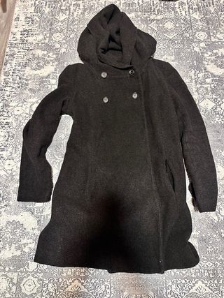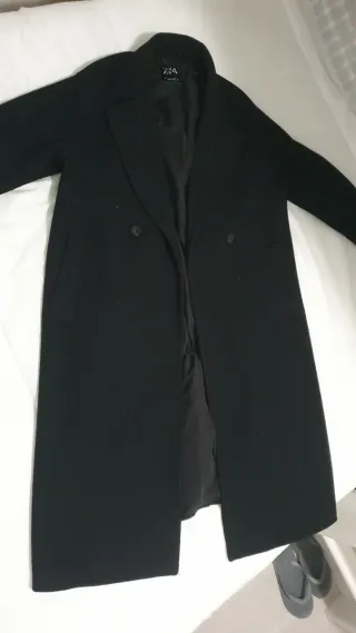 Abrigo largo de paño de la marca Zara. Talla XS, color negro Tiene un botón un poco partido, se puede ver en la foto