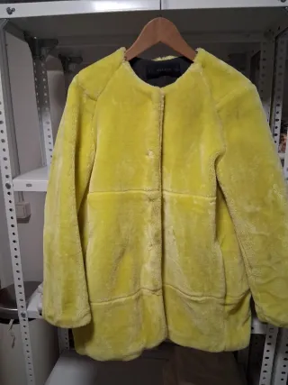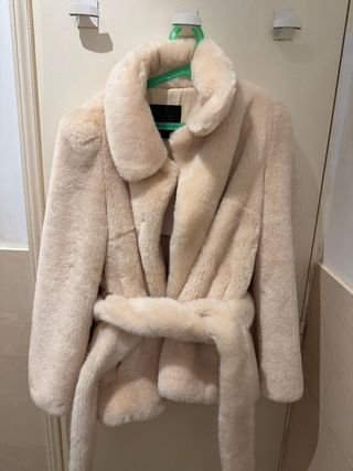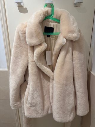 Abrigo de pelo sintético de Zara. Es una prenda suave y cálida, perfecta para los días fríos. - Cierre con botones. - Bolsillos delanteros.