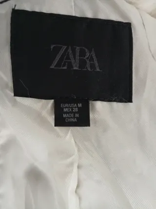 Elegante abrigo de Zara, perfecto para el invierno. Su diseño clásico lo hace muy versátil. Su tono es un blanco/crema. - Doble abotonadura frontal. - Cuello solapa. - Bolsillos laterales. - Puños vueltos. - material Lana y Nailon