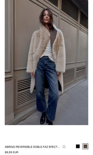 Abrigo largo reversible de Zara. Un diseño elegante y versátil para cualquier ocasión. Por un lado es efecto ante y por el otro lado entero de pelo Talla S Nuevo a estrenar con etiquetas!!!