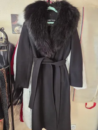 Abrigo largo de Zara con cinturón y cuello de pelo. - Diseño elegante y moderno. - Cinturón para ajustar a la cintura. - Cuello con detalle de pelo sintético.