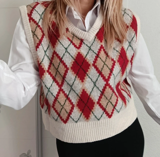 Poncho de punto con diseño de flecos. - Diseño de flores en color rojo. - Base de punto en color marrón. - Flecos en el bajo. - Talla única.