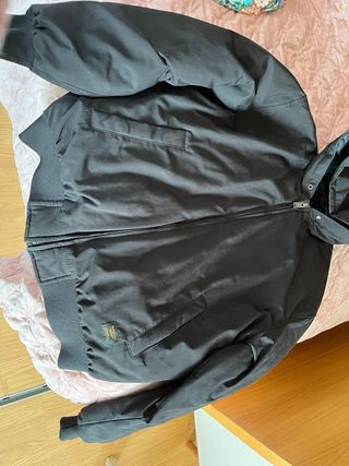 Cazadora de la marca Zara en color negro. Diseño moderno y versátil. Impermeable y con cortavientos. Usada solo 3 veces. - Capucha integrada. - Cierre de cremallera. - Puños elásticos.
