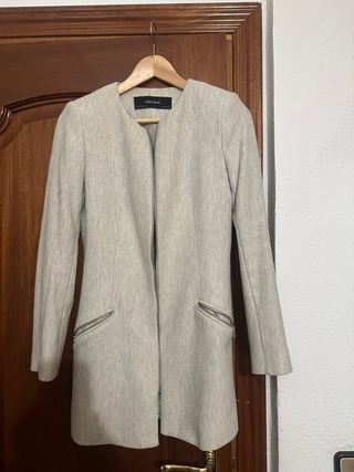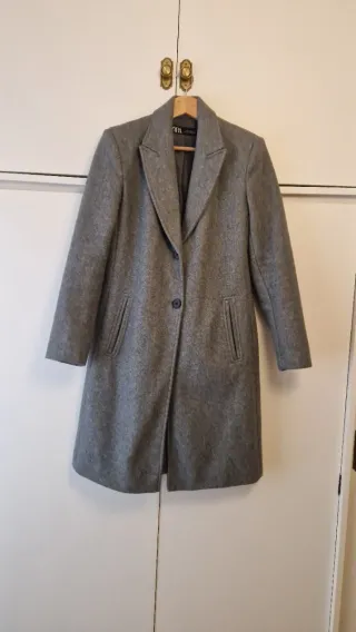 Abrigo elegante de Zara en color gris. Tejodo soft. Sienta muy bien. - Diseño clásico con solapas. - Cierre de un botón. - Bolsillos frontales.