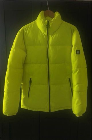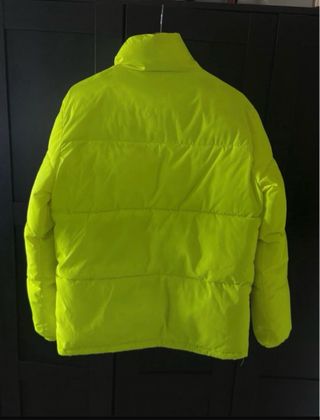 Abrigo de la marca Zara en un llamativo color verde fosforito. Es una prenda de abrigo acolchada. - Diseño acolchado. - Cuello alto.